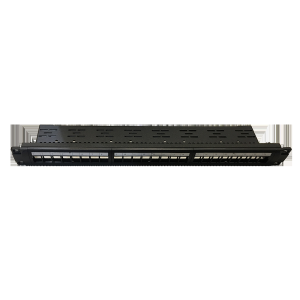 Pannello vuoto per montaggio di 24 porte keystone. Personalizza il pannello secondo i requisiti dell'installazione. Disegnato per montaggio in rack o armadio da 19" 1U.