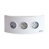 - Su disegno curvo e i suoi 3 elementi led differenziati permettono proporzionare illuminazione di emergenza oltre alla illuminazione ambientale se fosse necessario