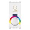Dimmer RGB 230 V~ 50 Hz per lampade LED RGB, per alimentatori elettronici LED RGB Vimar (art. 01876), comando ON/OFF e regolazione intensità luminosa con pulsante incorporato o da più punti con pulsanti NO, regolazione colore con potenziometro rotativo, individuazione al buio, bianco. Apparecchio non installabile nei contenitori Isoset